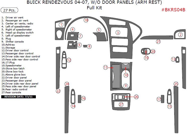 Buick Rendezvous 2004 2005 2006 2007 Full Interior Kit Without Door Panels Arm Rest 27 Pcs