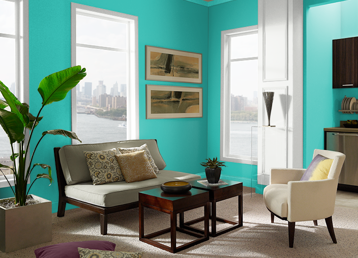Living Room Design With Aqua Color Paint Living Room