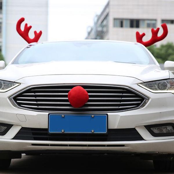 2019 Christmas Car Decoration Antlers Nose Ornament Vehicle Cartoon Deer Decor Rose Red Christmas Car Decorations 2 Funny Car Accessories Girly Car